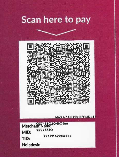 ACCOUNT HOLDER NAME - MAYA BAI LODHI FOUNDATION ACCOUNT NUMBER - 926020011646119 IFSC CODE - UTIB0000128 BANK - Axis Bank BRANCH - Madan Mahal, Jabalpur